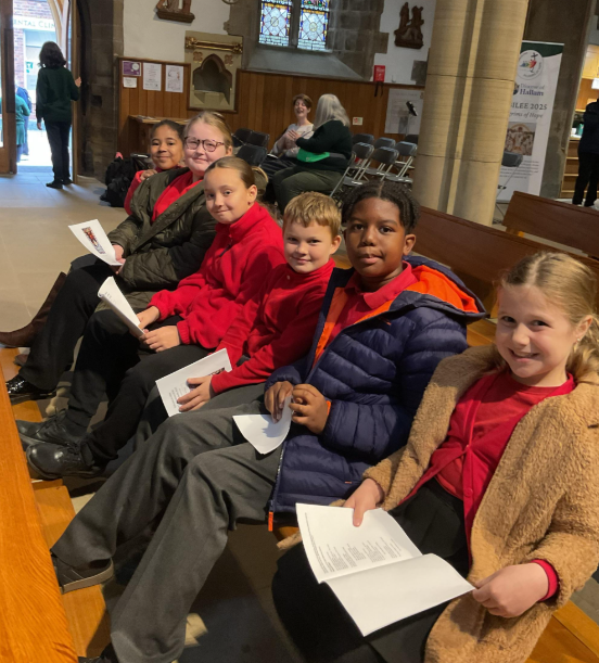 On Friday 17th October 2025, our Mini Vinnies and school chior attended a St Clare's Trust mass held at St Marie's Cathedral. Many schools within the Trust gathered together from across the Diocese of Hallam to celebrate the Jubilee Year theme of 'hope.' It was an amazing opportunity to meet children from other schools, sing and pray together as a whole sommunity.