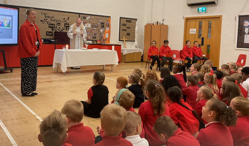 On 22nd May 2025 Father Patrick came into school for Easter mass and the parishioners were also invited. The Year 6 Faith in Action Leaders helped with the readings and bidding prayers. We were encouraged to reflect on Pentecost and how Jesus has a new life in his heavenly home. We also spoke about the hope we are filled with after Jesus' resurrection and how this shows nothing is impossible for God.