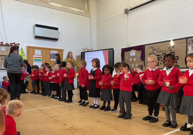 On 9th May 25, we had two special visitors from St Vincent De Paul who came along with Father Patrick to officially welcome our newly appointed Mini Vinnies into their roles. The children's parents/carers were invited and it was a special moment.