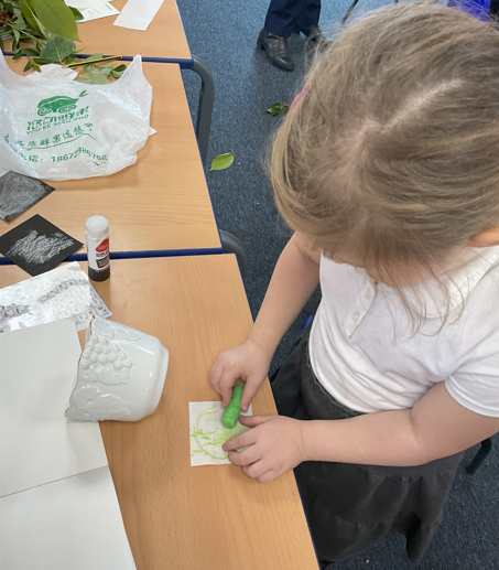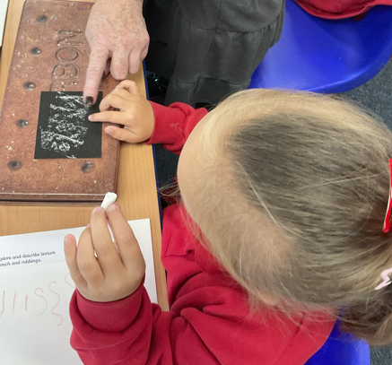 We have been exploring different drawing materials and creating 'rubbings' to explore texture.