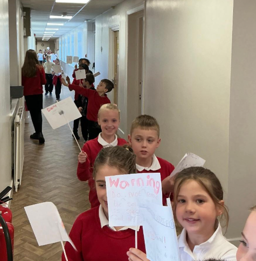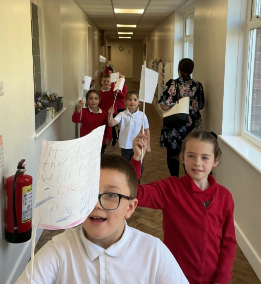 To bring this to life, we held our own protest around school, demonstrating just like Owen to argue for keeping the stone soldier! The children really enjoyed getting into character and using persuasive language to make their voices heard.