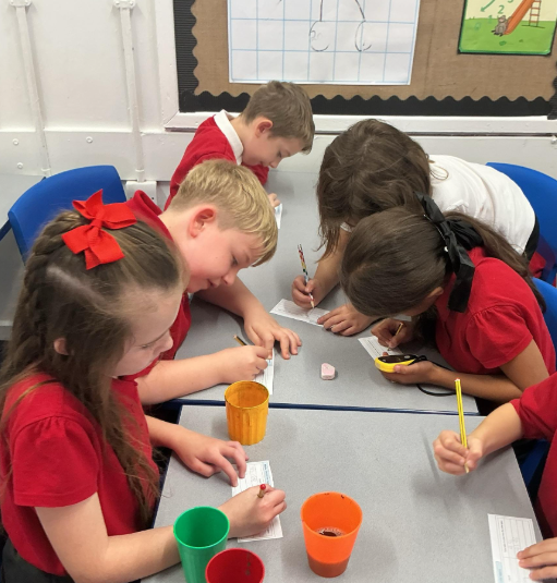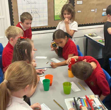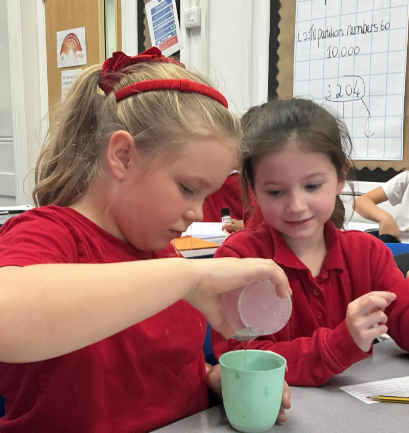 Year 4 investigated the runniness of different liquids by timing how long they took to pour.