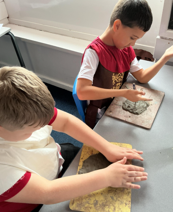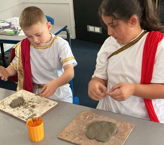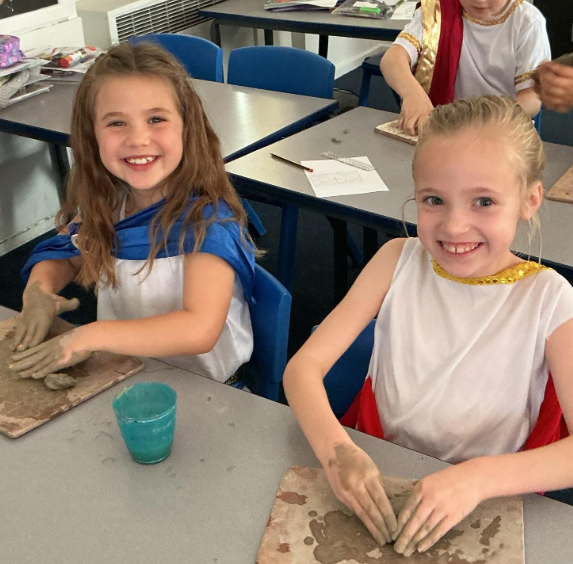 We created some Greek tiles using clay, which is why they may have come home a little bit messy!