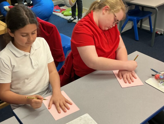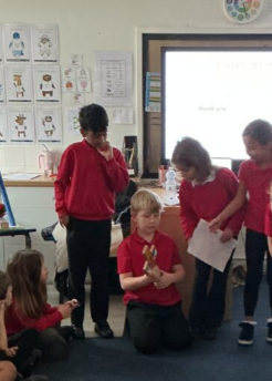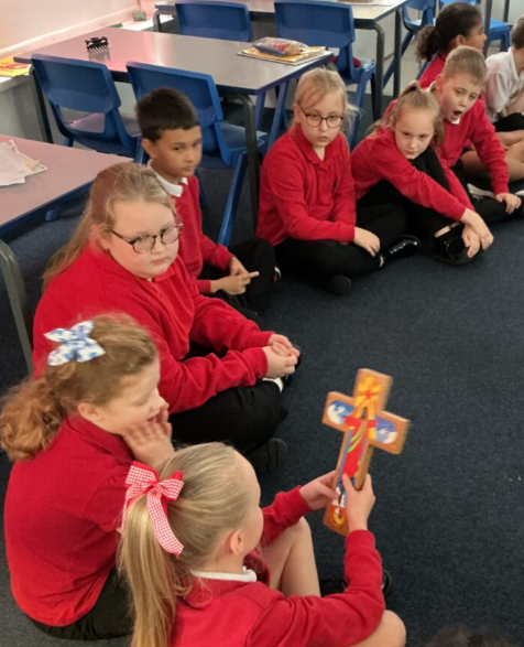 The children have been reading Genesis 15:1-6 in their RE lessons and re-telling the story of the call of Abram. On slips of paper, the children wrote down the promises God made to Abram. Once they had written them down, they put them into a basket and they read the promises together as a class.