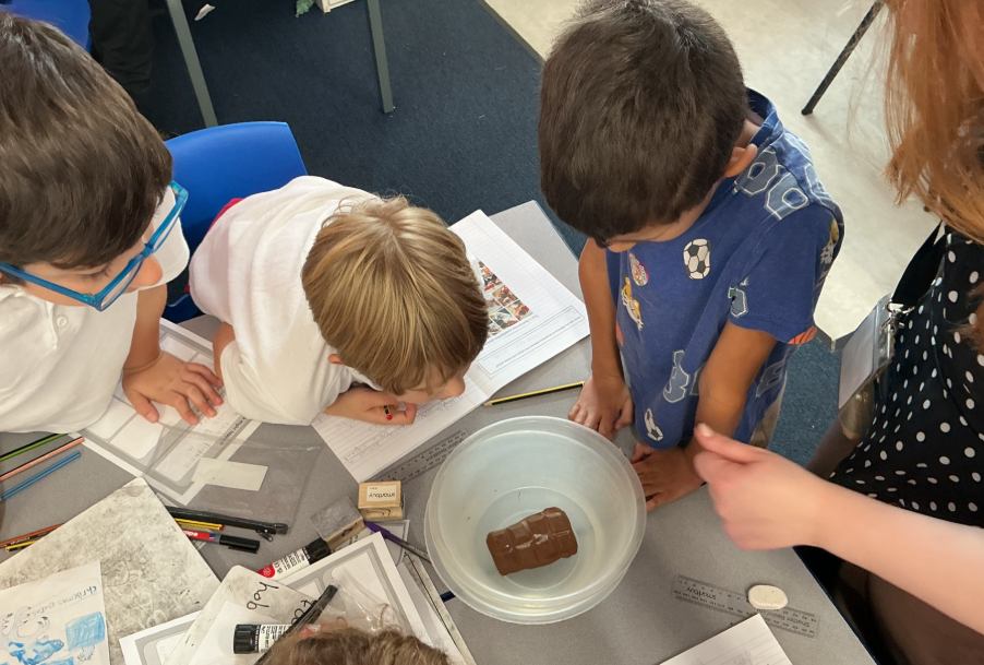 Year 4 had a special mission from Mr Wonka to investigate what the best way to melt chocolate is. They timed how long the bar of chocolate took to melt, and each group placed the chocolate into a different place. We came to the conclusion that putting chocolate in a ziplock bag into a bowl of boiling water was the quickest at 1 minute 22 seconds.